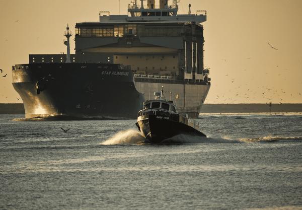PHOTO: Harbour craft ahead of a cargo vessel in the Houston area. Port Houston