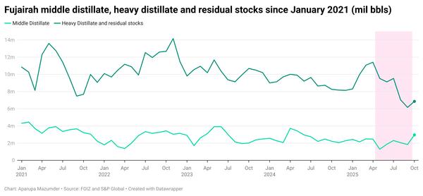 Prompt availability of all fuel grades remains "super tight" in Fujairah, with most suppliers suggesting lead times of about 7-10 days for all grades, similar to last week. However, some suppliers can still offer prompt deliveries, according to a source.