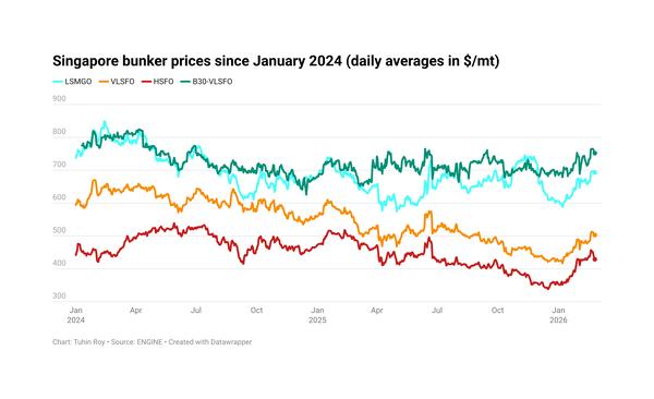 - B24-VLSFO up $8/mt to $689/mt