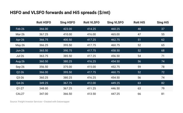 Changes in weekly average Singapore fuel oil trade from December to January (so far):