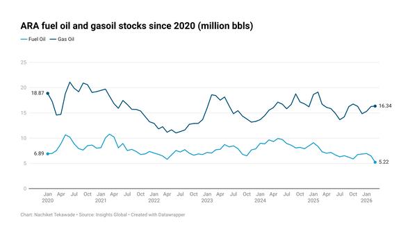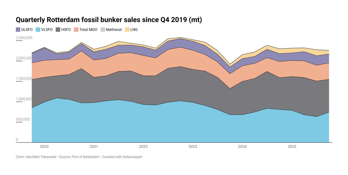 Suppliers at the Dutch port sold around 3.4 million mt of HSFO in 2025, up 3% from 2024.