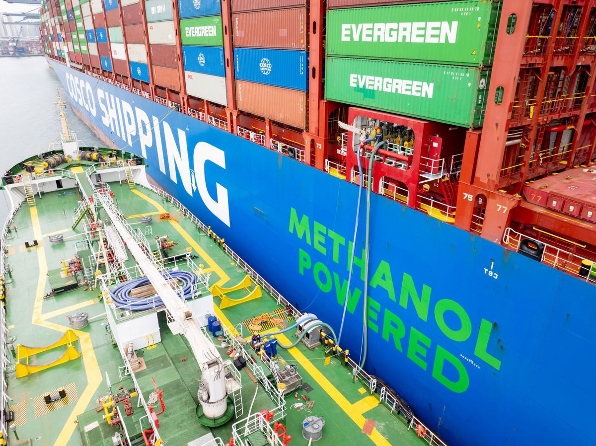 Chinese container liner COSCO Shipping Lines’ dual-fuel container ship was bunkered with 200 mt of bio-methanol during cargo unloading operations at the Cosco-HIT terminal in the Port of Hong Kong.