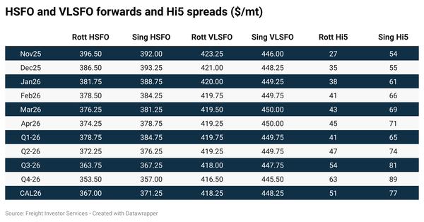 Rotterdam’s B30-VLSFO HBE premium over pure VLSFO has narrowed by $3/mt in the past week to $182/mt, while its B30-LSMGO HBE premium over LSMGO has narrowed by $8/mt to $148/mt.