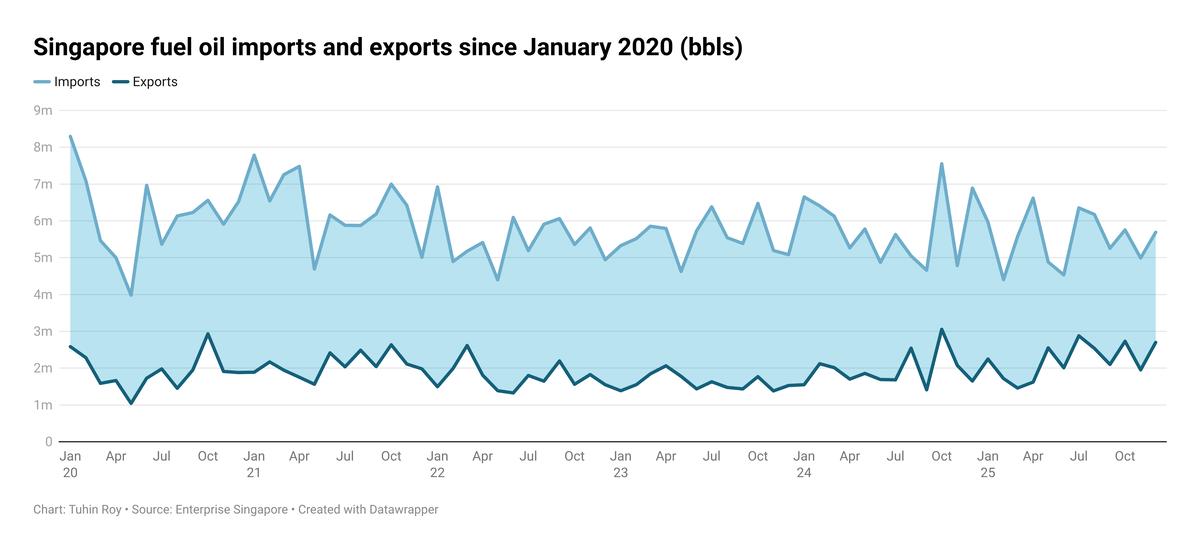 Singapore’s fuel oil inventories stayed above 25 million bbls in December, even as the port’s net fuel oil imports declined by 2%.