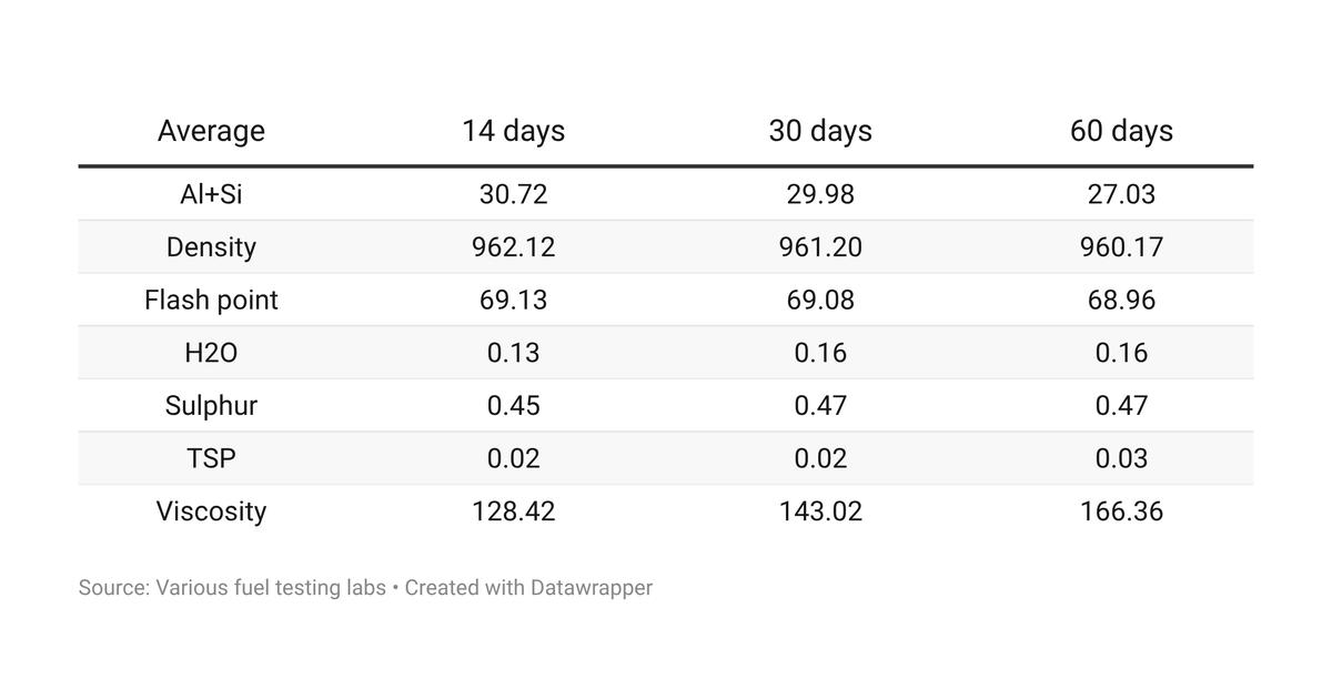 Typical VLSFO qualities in ARA ports based on 108 fuel samples over the past 14 days.