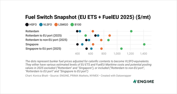 Singapore has been making some efforts to decarbonise its own operations and to facilitate bunkering of more environmentally fuels. It recently inked a deal with oil supermajor Shell to advance adoption of electric ferries and “the development of low-and zero-carbon fuels in Singapore.”