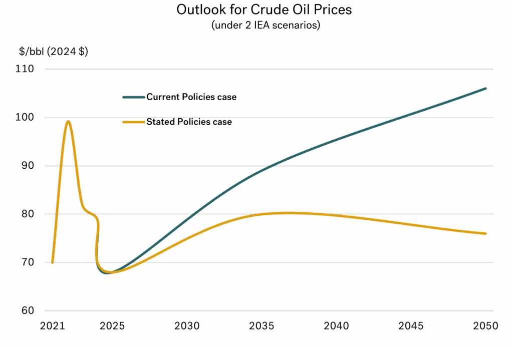 The ‘Net Zero by 2050’ scenario is also one used previously. This is a theoretical case and shows a pathway that would achieve net zero CO2 emissions by 2050. We have not shown this case in the following analysis.